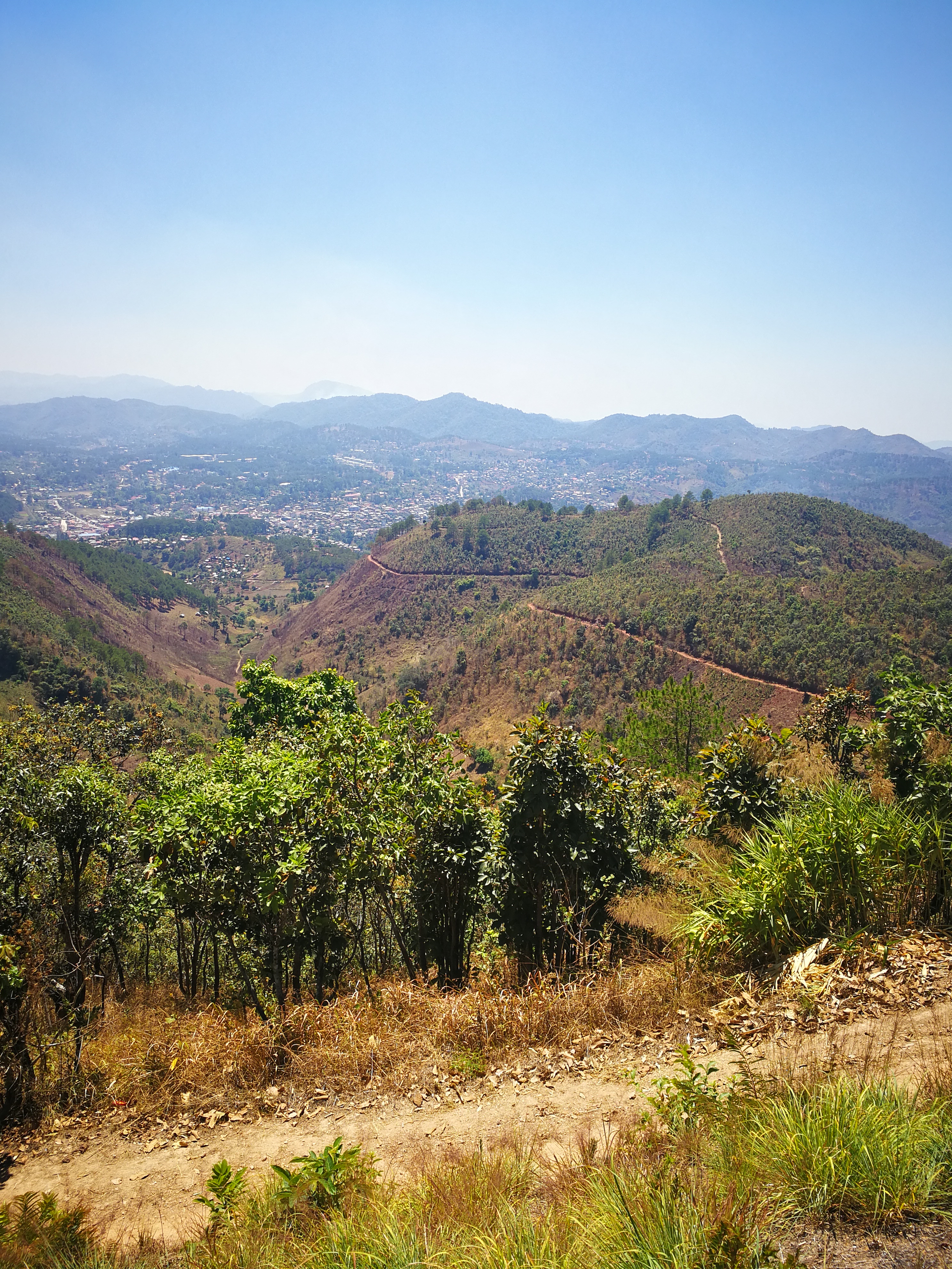 Drugi dzień postanowiliśmy spędzić bardziej aktywnie, wyruszyliśmy więc na wycieczkę górską. Szlak rozpoczyna się od klasztoru Thien Taung. Widoki są niesamowite, a po drodze spotkaliśmy raptem dwie osoby. Mimo że noce w Kalaw są zimne, to w ciągu dnia można liczyć na palące słońce. Podejście na szczyt zajęło nam około 2 godzin. Znajduje się tutaj klasztor Ma’Nor’ A’Hla. Birmańczycy przyjeżdżają tutaj, aby pomedytować i wyciszyć się. Poznaliśmy kobietę, która na co dzień mieszka w Rangun, i która wraz z grupą osób przyjechała tutaj na kilka dni, aby zapomnieć choć na chwilę o zabieganym życiu w mieście.